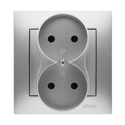 Dobbel stikkontakt uten jording, med skodder, 16A, alu