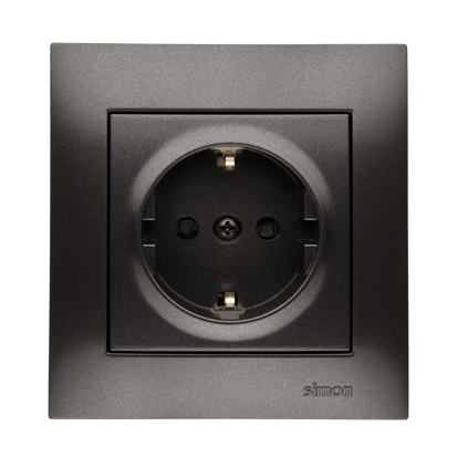 Enkelt uttak med Schuko jording med skjermskinner, 16A, antracit