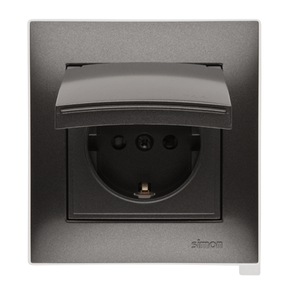 Enkel stikkontakt uten jording, med skodder, 16A, antracit