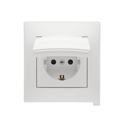 Enkelt uttak med Schuko jording med skjermskinner, 16A, hvit