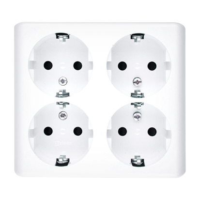 Utenpåliggende, 4 ganger uttak, med jording , Schuko type med skjermskinner - skandinavisk versjon, 16A, hvit