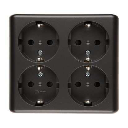Utenpåliggende, 4 ganger uttak, med jording , Schuko type med skjermskinner - skandinavisk versjon, 16A, antracit