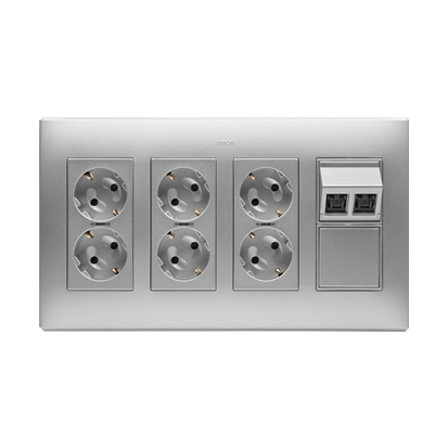 TV-sett med adapter- og dataport, 16A, aluminium