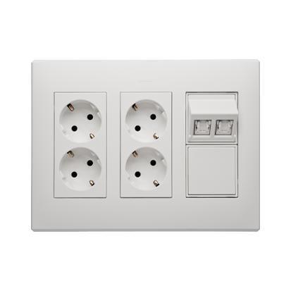 TV-sett med adapter- og dataport, 16A, hvit