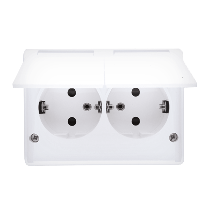 Dobbelt uttak med Schuko jording med skjermskinner - IP44 versjon - skandinavisk versjon, 16A, hvit