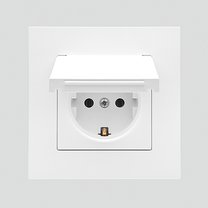 IP44 enkel Schuko stikkontakt med lokk og rammeforsegling - samme farge klaff og ramme, hvit matt, 16A