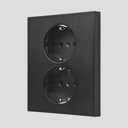 Dobbelt uttak med Schuko jording med skjermskinner, svart matt, 16A