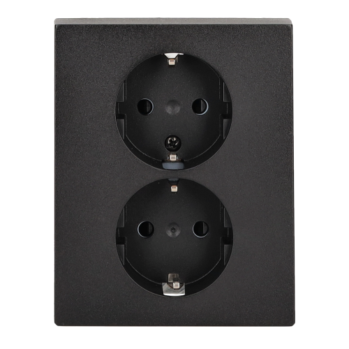 Dobbelt uttak med Schuko jording med skjermskinner, svart matt, 16A